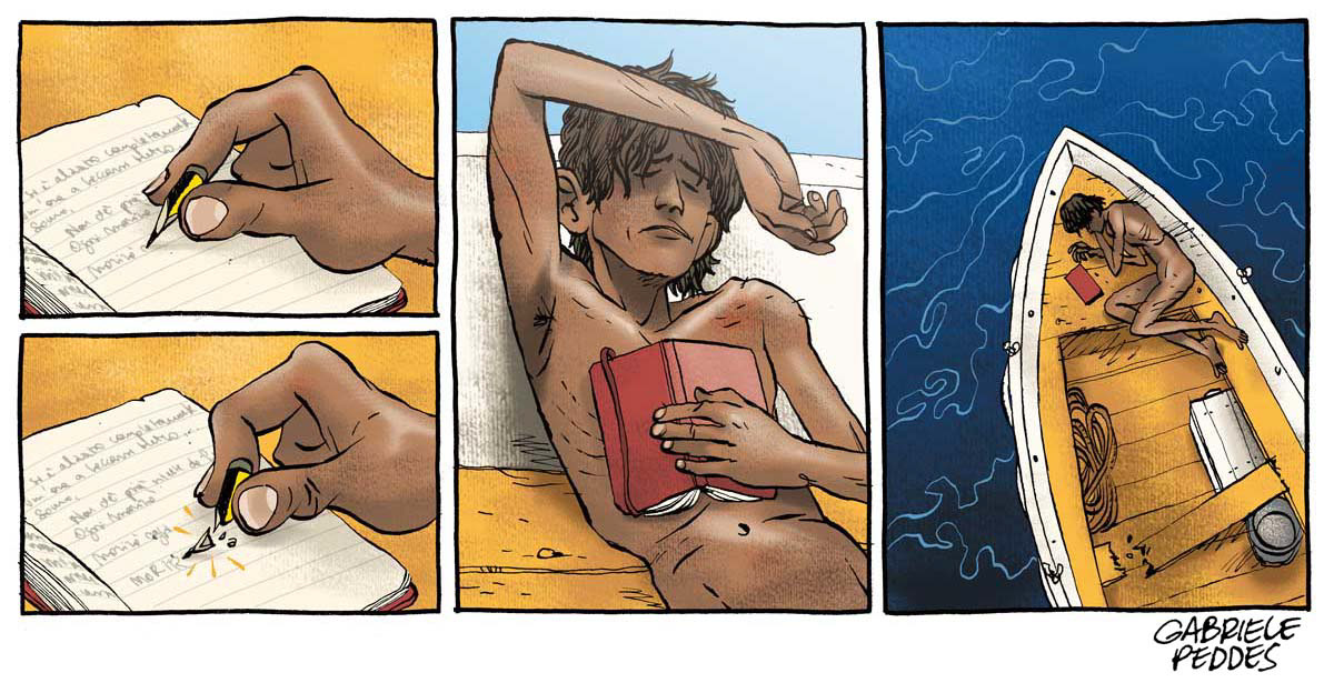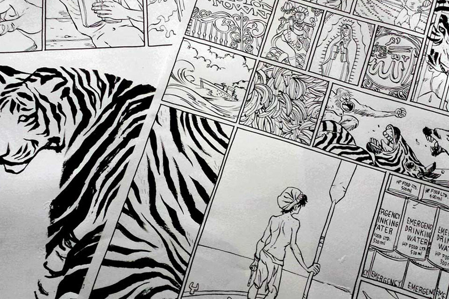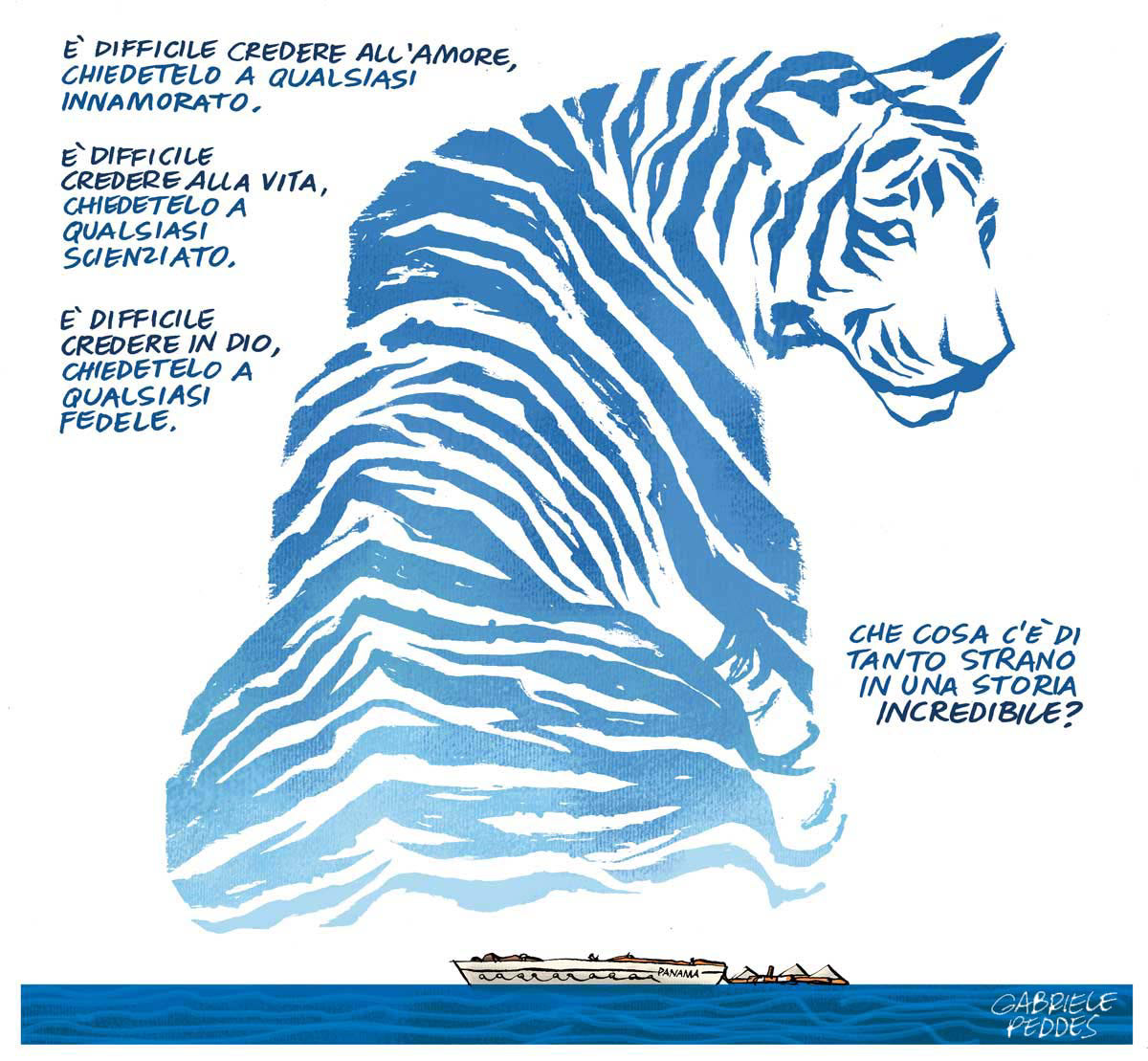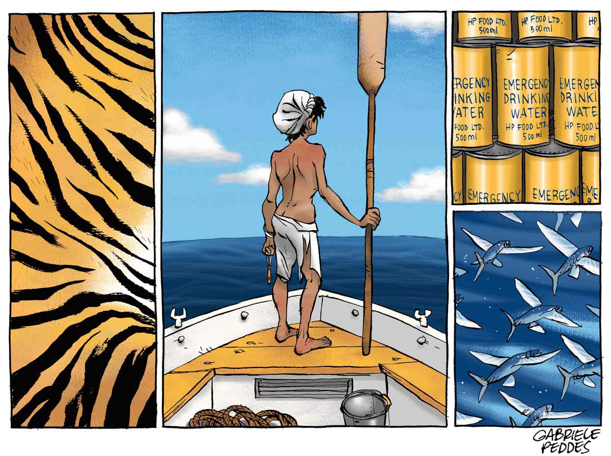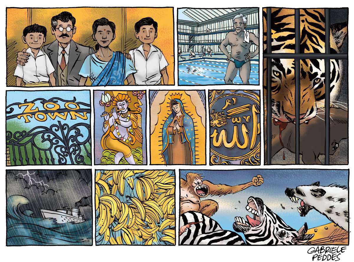 Due tavole a fumetti di introduzione al romanzo di Yann Martel.